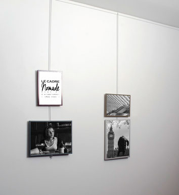 Le systeme de suspension est compose de 3 elements principaux. En accrochant ou en faisant glisser les fils avec les crochets a tableaux dans le rail vous pouvez suspendre vos encadrements. Le crochet pour tableau glisse aisement vers le haut ou vers le bas pour varier la hauteur daccroche a volonte.